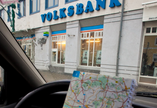 Az egyik bank előcsarnokában „négy-öt magyar összehajol”. Mindenki tanakodik, jó tanácsokat, neveket, telefonszámokat osztogat, segítőkész, mosolyog. Nem ismerek „magunkra”. Pedig csak tíz kilométerre vagyunk otthontól. Megtudom, melyik bankhoz nem érdemes, mert „rátették a kezüket az oroszok”, s melyikhez szintén nem, mert ott a számlanyitáshoz az kell, hogy rendszeresen érkezzék bizonyos összegű euró a kontóra. Márpedig mi nem abban kapjuk a fizetésünket – igaz, néz fel papírjaiból apja és fia –, „ez azért megoldható”. Egy testvérpár szerint még jobb lenne egy fapadossal kimenni, mondjuk, Manchesterbe. De nem lehet, mert a britek helyi tartózkodást is kérnek számlanyitáshoz, nem elég a magyar útlevél, vagy a személyi igazolvány és a lakcímkártya. „Pedig az milyen jó messze van, oda senki keze nem ér el!” – tűnődnek, s készülnek befelé, meghallgatásra. Egy szemlátomást jól szituált famíliát éppen kikísér a filiálé főnöke. Jó üzletet köthettek, mert mindük képe olyan, mint a macskáé, miután végzett a tejfeles bögrével. Elegáns dossziéval szép nagy – naná, hogy magyar rendszámú Saabhoz távoznak. Idős bácsi és néni jön, ők sem beszélnek németül. Mint a legtöbb ügyfél. A szomszédok mondták neki: vigyék ki a kis pénzüket, mert „úgy jobb lesz”. A régi retikülben nejlonzacskóba kötve a megtakarításuk.