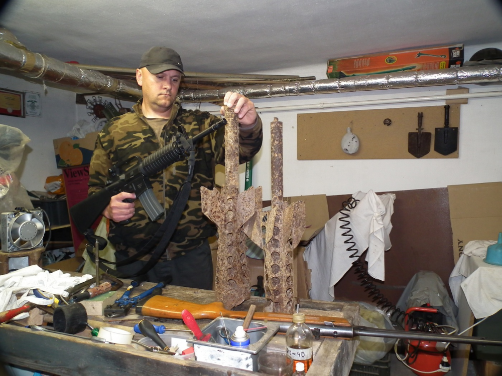 A tollforgató ámul: hiszen fegyverkereskedőként emlegették. – Ugyan már! Gyűjtő vagyok. Az eredeti szakmám szakács, de most az építőiparban dolgozom. Kamaszkorom óta vonzanak a fegyverek, sorkatonaként egy évig a tűzszerészeknél szolgáltam. Úgy csereberéltem más fegyvergyűjtőkkel, mint mások a bélyegeket. Inkább vettem, mint eladtam. Amióta ezzel foglalkozom, 20 év alatt rákölthettem vagy 4 milliót. A fémdetektorommal, ami legális és 1 méterre „lát” a földbe, főleg a háborús katonai felszereléseket – bajonett, sisak és hasonlók – kerestem. Csak Pestről tucatnyian járnak ide keresgélni, de én nem tartok velük. Egyedül több az esély, hogy találok is valamit.