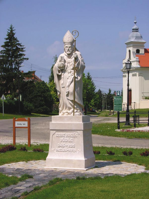 Bár a Zichy téren álló püspökalakkal a szobrász nem csupán a község védőszentjének akart emléket állítani, hanem azokat a középkori szerepjátékokat is fel kívánta idézni, melyek Szent Miklós tetteit méltatták, a Mikulás-elnevezéstől a decemberi hideg rázza. Hiába volt a környéken is szokás Miklós-nap előestéjén, hogy egy püspöksüveges apó házról házra jár, Miklós-történeteket mesél, dicséri és apró ajándékokkal halmozza el a gyerekeket, az ő szobrát akkor se említse senki egy napon a Mikulással. A helyi gyerekek azért olykor, főleg december 6-a közeledtével fittyet hánynak a szentségre, és fehér bojtos piros sapkával, no meg persze piros köpennyel igyekeznek a maguk vágya és szája íze szerint kicsit átformálni a fehér kőpüspököt.