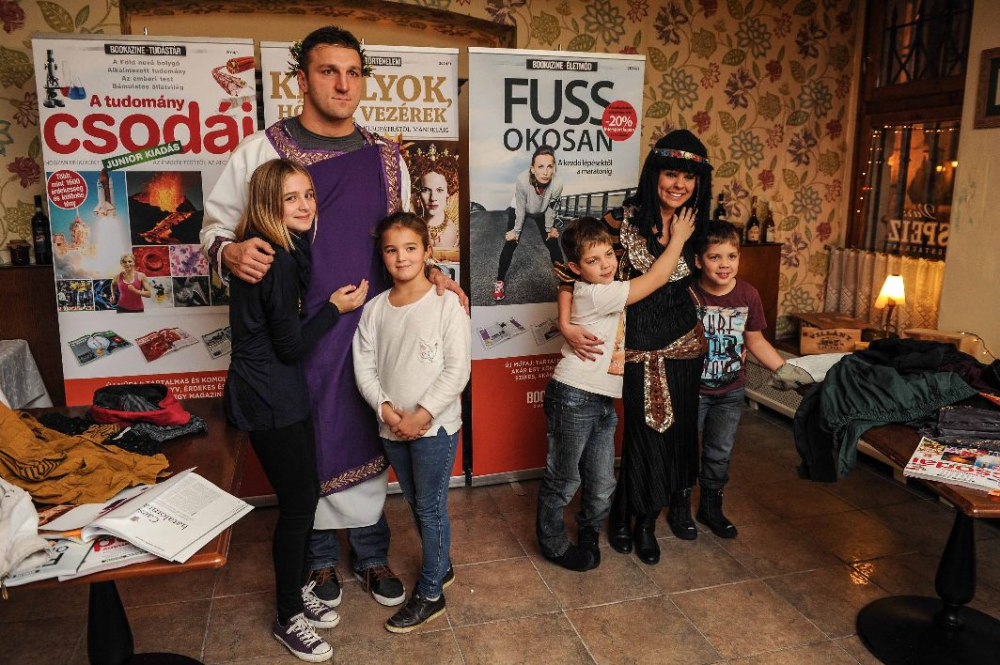 Játékos Bookazine-próbák: Együtt bújt jelmezbe Ada és Kiss Gergő. - Gyerekeikkel mérték össze tudásukat a sztárok. Kiss Gergő szinte már rutinosan öltötte magára az ókori uralkodó, Caesar tógáját, Adának pedig ezúttal ikerfiai segítettek stylistként, amikor egy igazi szépségideál, Kleopátra bőrébe bújt. A hírességek egy játékos vetélkedőn találkoztak, ahol gyerekeikkel történelemmel, tudományokkal és egészséges életmóddal kapcsolatos feladatokban bizonyították tudásukat.